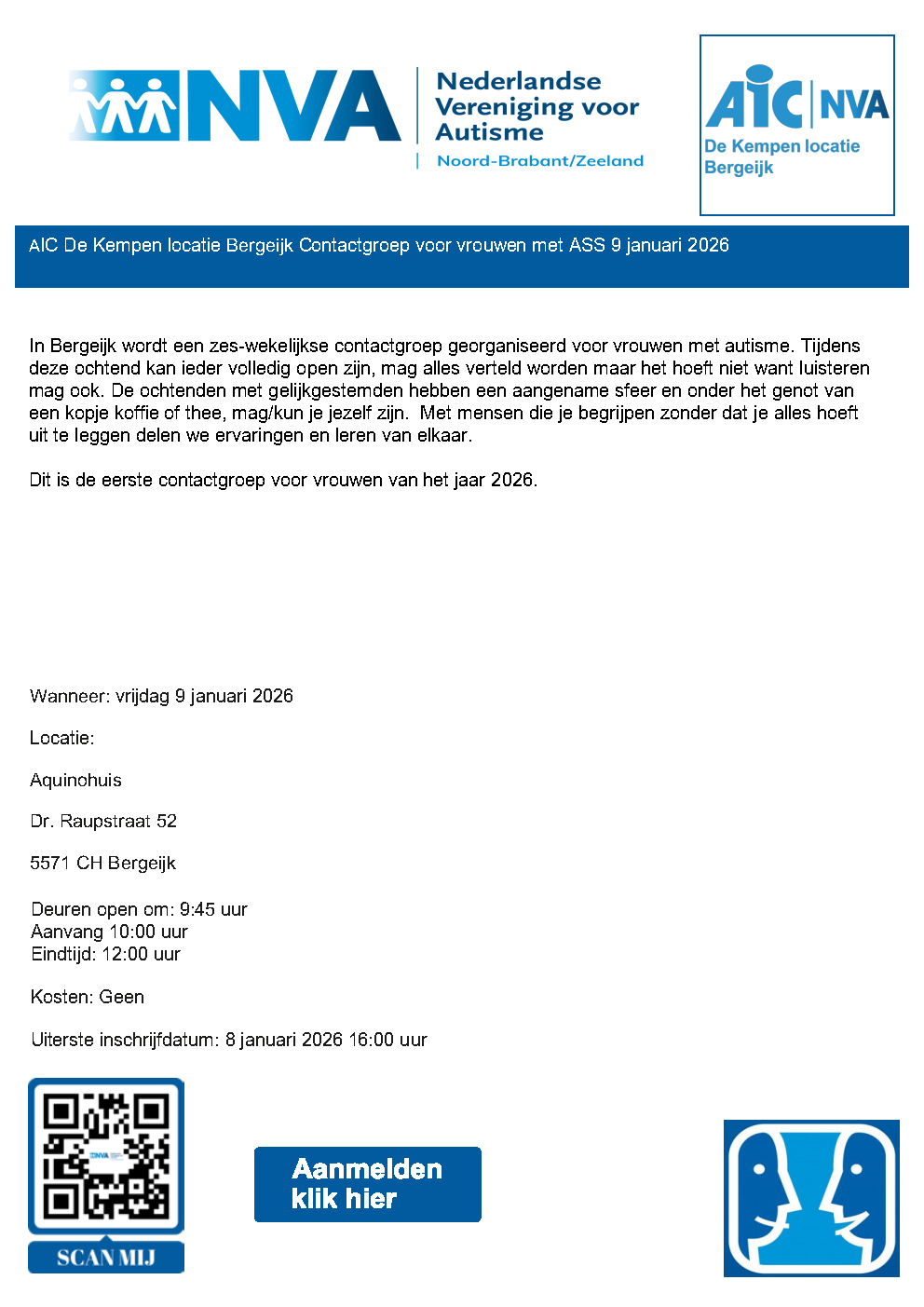 AIC De Kempen locatie Bergeijk contactgroep voor vrouwen met ASS 9 januari 2026