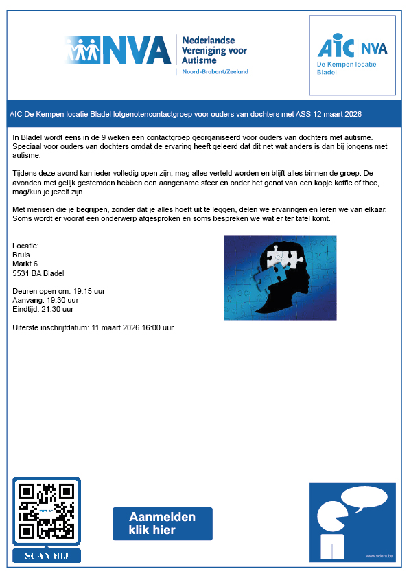 AIC De Kempen locatie Bladel lotgenotencontactgroep voor ouders van dochters met ASS 12 maart 2026