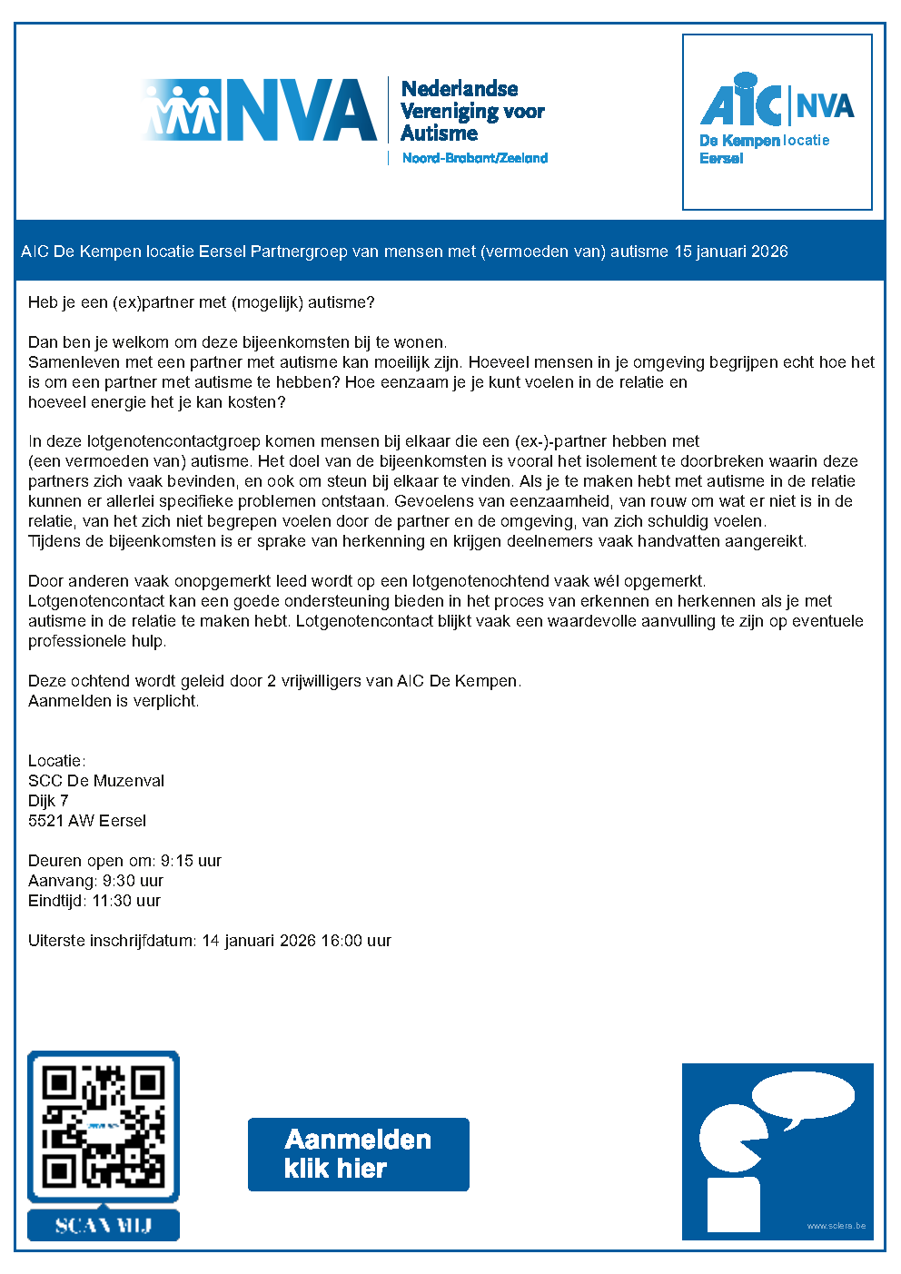 AIC De Kempen locatie Eersel partnergroep van mensen met (vermoeden van) autisme 15 januari 2026