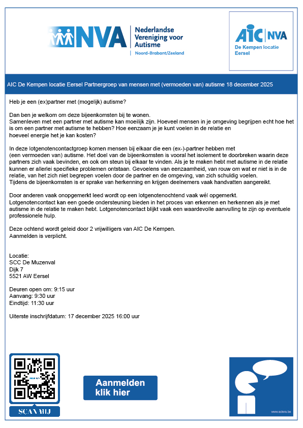 AIC De Kempen locatie Eersel partnergroep van mensen met (vermoeden van) autisme 18 december 2025