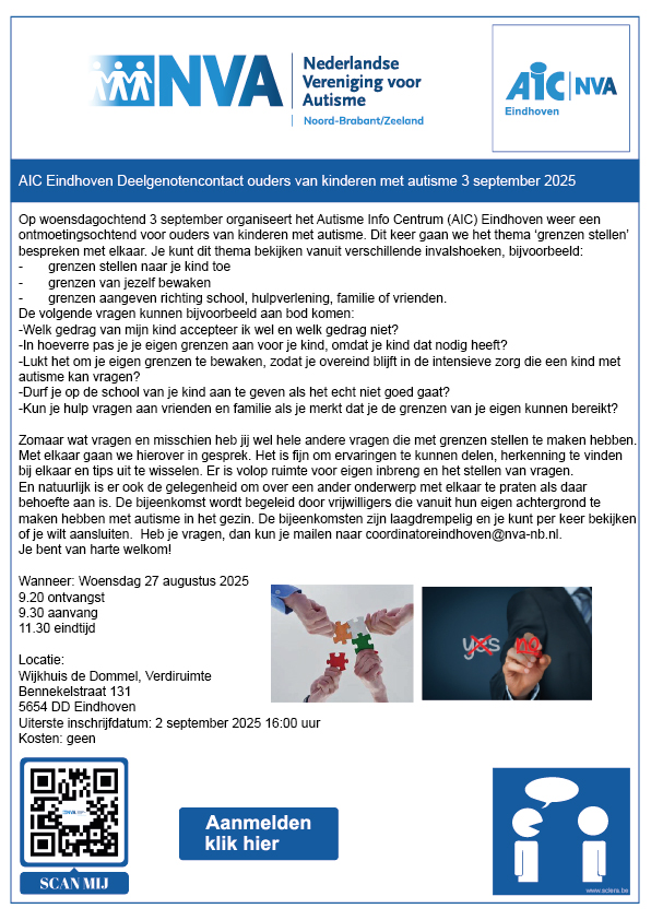 AIC Eindhoven deelgenotencontact ouders van kinderen met autisme 3 september 2025