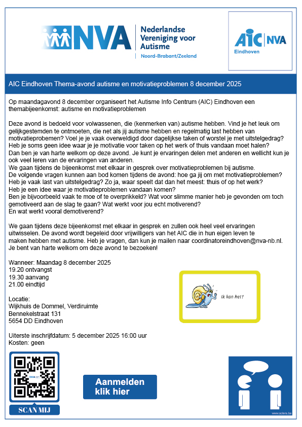 AIC Eindhoven thema-avond autisme en motivatieproblemen 8 december 2025