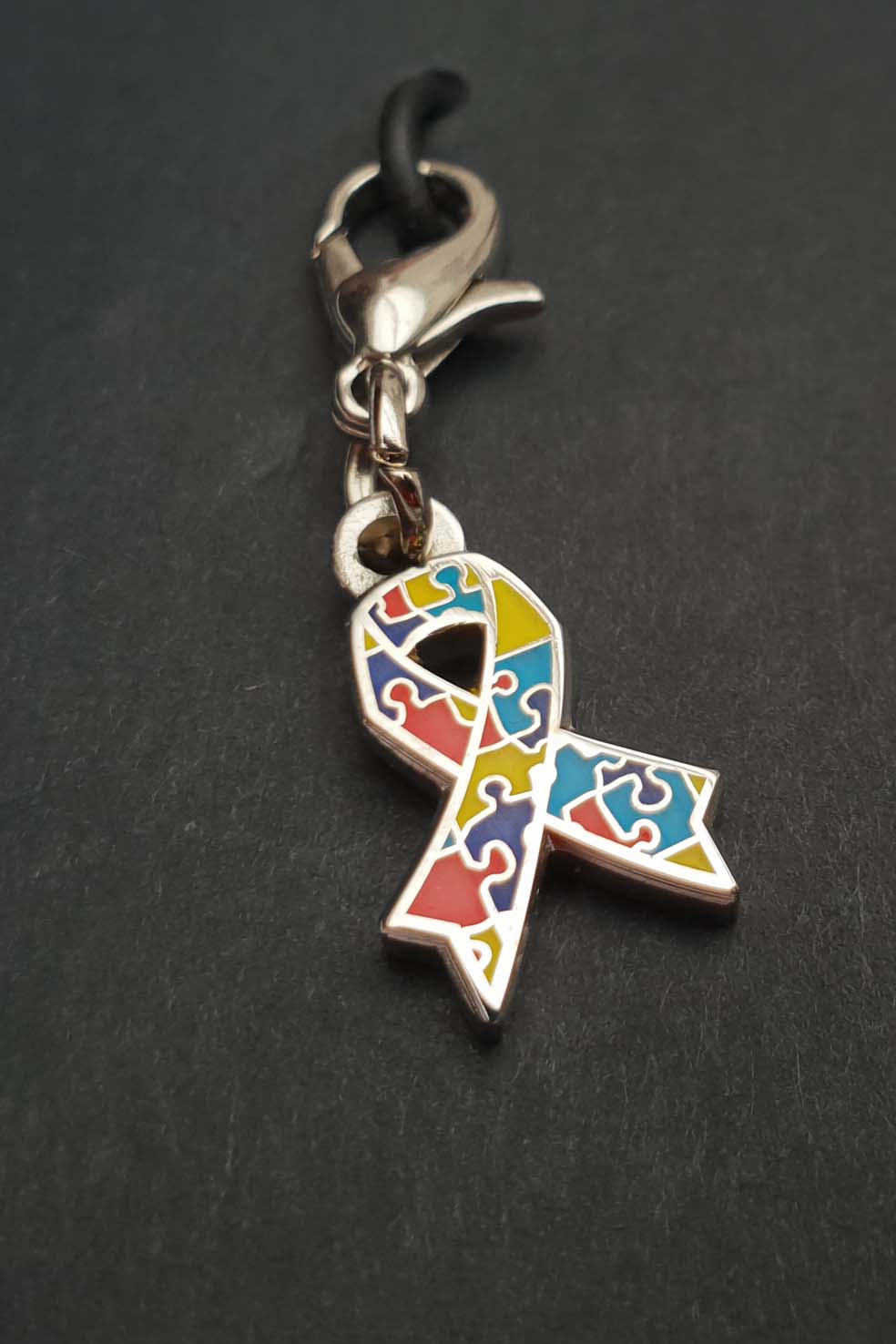 Dit bedeltje kan ook aan je ritssluiting worden vastgemaakt als herinnering aan de bewustheid van autisme. De bedeltjes zijn gemaakt volgens het cloisonné-proces en zijn gepolijst .