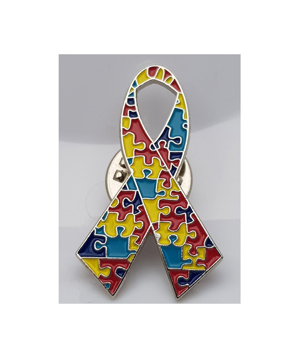 Het veelkleurige Autisme-Lint speldje wordt geleverd met een heldere, handgemaakte emailleer vulling en zilverbeplating. Het veelvoudige kleurpuzzelpatroon wordt uitsluitend gebruikt voor de bewustwording van autisme. Het puzzelpatroon van dit lint weerspiegelt het mysterie en de complexiteit van autisme. De verschillende kleuren en vormen vertegenwoordigen de diversiteit van de mensen en families die met deze stoornis leven. De heldergele kleur in het autisme lint staat voor hoop, door middel van onderzoek.