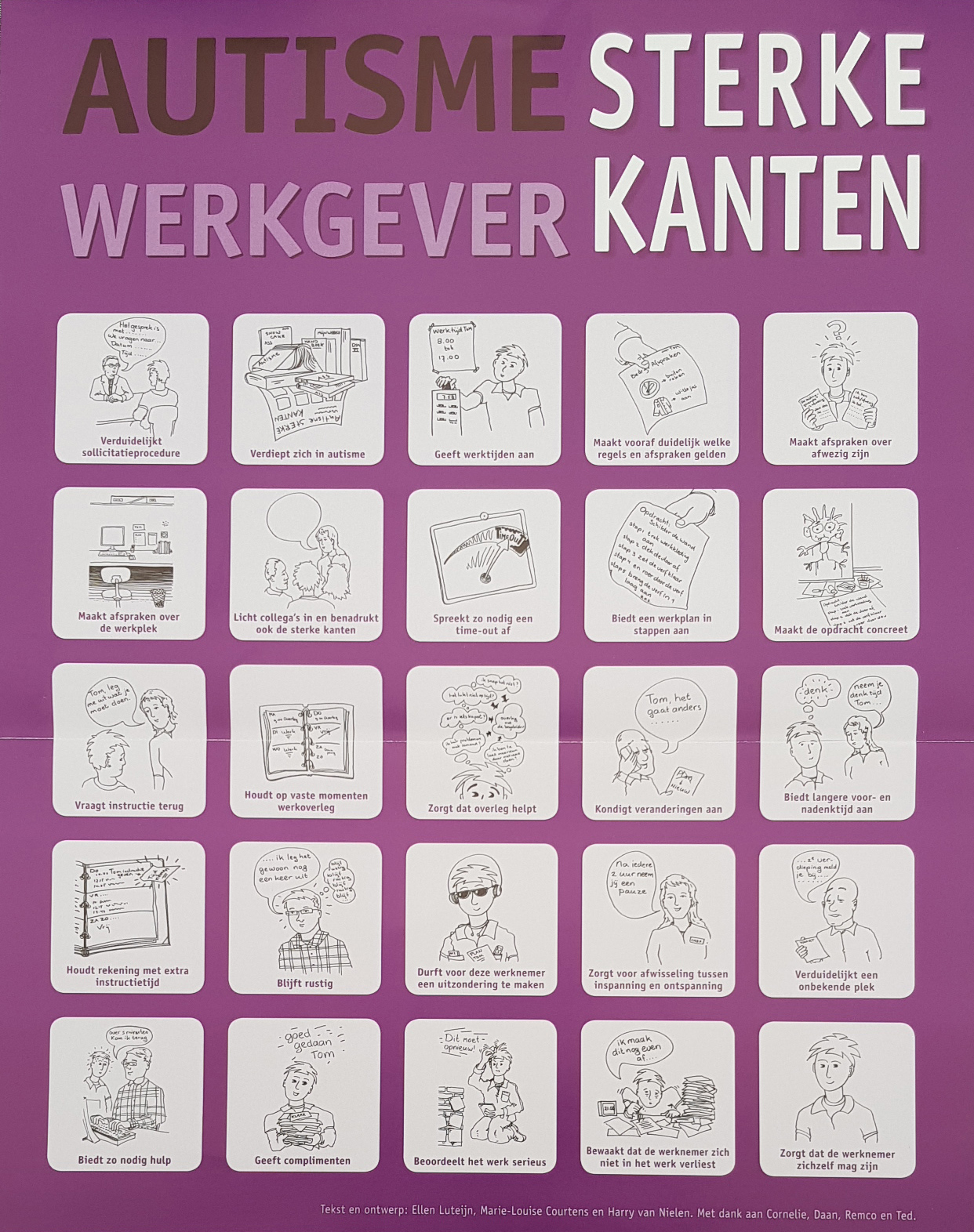 Poster met illustraties over de sterke kanten van autisme voor werkgevers.